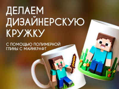 Кружка с декором из полимерной глины Мастерим кружку вместе с майнкрафт